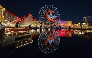 Next we moved over to Pixar Pier and rode Incredicoaster. It was the first time we had been on the coaster since they re-themed it. The ride was kind of rough, though, so Madeline took a rest while I photographed some of the areas in Pixar Pier. When she felt better, we went on the mild Pixar Pal-A-Round. The Ferris Wheel gave us a good view of our resort, a bunch of different mountains, and a number of other things. Finally in Pixar Pier, we rode Silly Symphony Swings. |