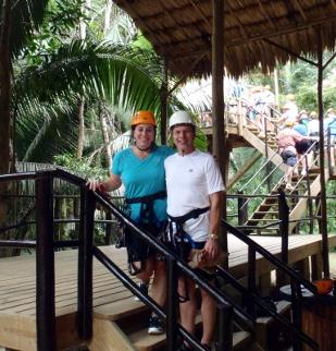 The last time we were in Belize, we went tubing through a cave. Unfortunately, about 20’ into the cave, Alicia started to panic and feel claustrophobic. It turned out not to be very relaxing or even fun. We decided to try it again, only this time we added a ziplining adventure before the tubing. We thoroughly enjoyed the rigorous workout during the climbing of trees to get to the ziplines, as well as the trek to the caves, and then we enjoyed the relaxing ride on the inner tubes. |