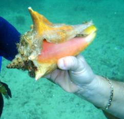 Aside from the coral, we found some interesting creatures, like a cushion starfish, conch, sea urchin, and a brittle starfish |