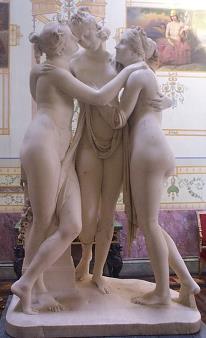 Psyche Revived by Cupid’s Kiss and The Three Graces by Antonio Canova. The original version of Psyche is in the Louvre, and we have a statue at home of that, as well as another version of the Graces. |