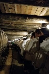 It was time for the mines, so we put on our special clothes, took a photo, straddled a train-like shuttle, and went deep into the earth. We saw photos of people in the mines in the early 1900’s, and then it was time for us to ride the slide. We straddled a smooth piece of wood and slid on our butts. We also crossed an underground lake, walked back and forth between Austria and Germany, and saw a man preserved in the salt. |